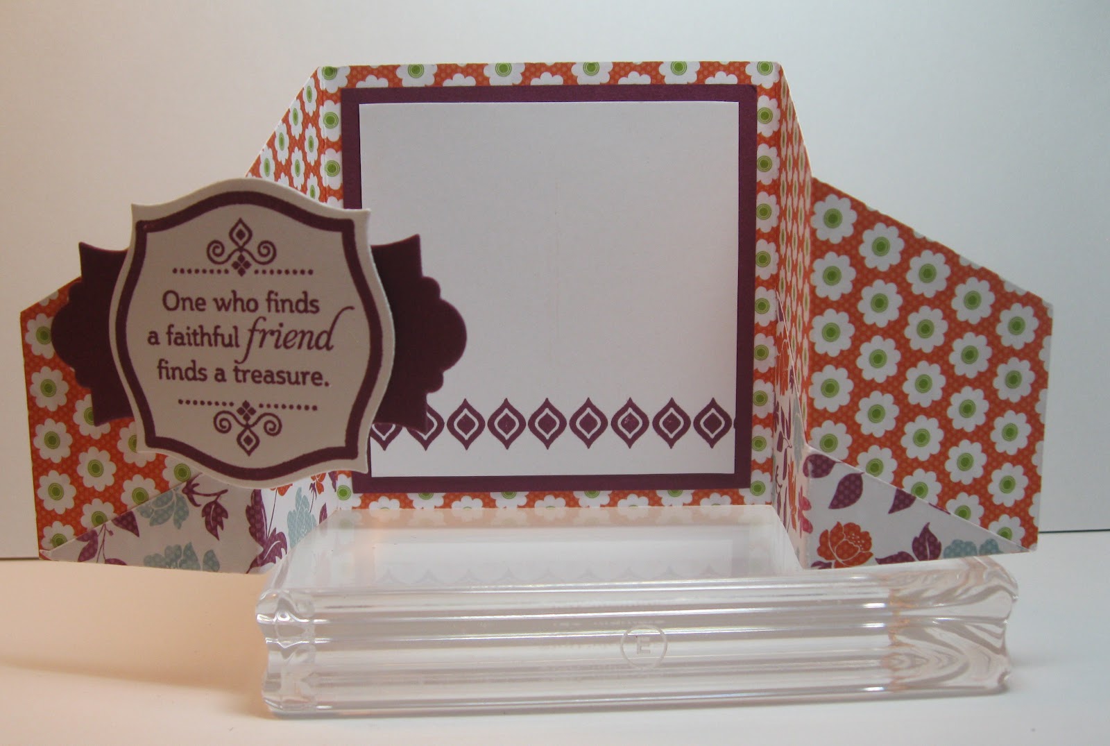 Here’s another card I received at Convention. I love it! It is a Gated Fold card and it was made by Susan Barron. I love what she did on the inside as well. It uses the Floral District DSP. Tomorrow I will share a card I made using this fold.