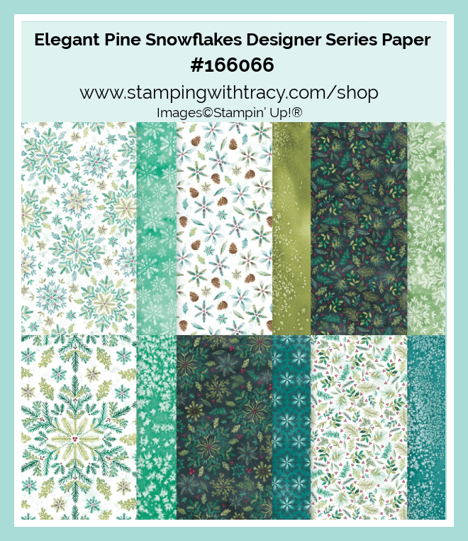 - Elegant Pine Snowflakes Designer Series Paper: 4-1/2″ x 2-1/4″