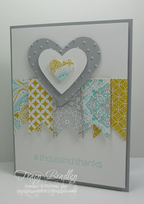 Have you noticed how popular banners are??? They are everywhere! This card was inspired by one I received from Dawn Griffith. It is so easy to make using two sets of Framelits in your Big Shot. The banner came right from the set, Hearts a Flutter and my hearts are from another set of Framelits called the Heart Collection.