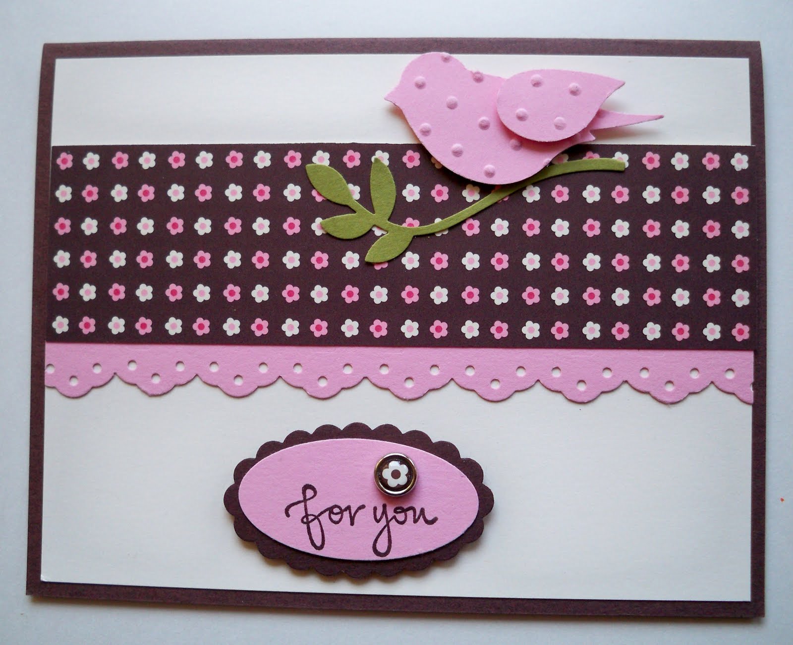 Today I have a card that also features many items from the Occasions Mini. I used the Specialty Designer Series Paper called Sending Love Specialty. I love this paper and am really going to miss it. I also used the bird punch but ran it through the Big Shot first using the Perfect Polka Dots Impressions Folder. The button is also from the Mini and are the Sending Love Epoxy Brads in Chocolate Chip. I got the idea for this card from Becky Roberts. You can see her card here. Thanks so much for stopping by!