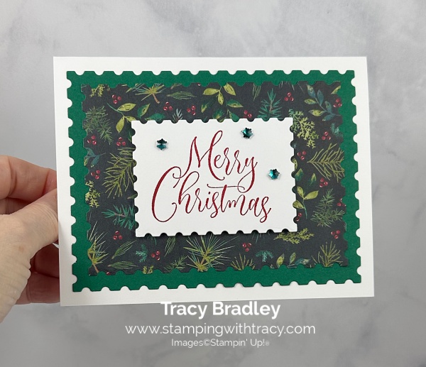 The card I’m sharing with you today was made with the Traditional Labels Bundle. I also used Elegant Pine Snowflakes Designer Series Paper (an Online Exclusive).