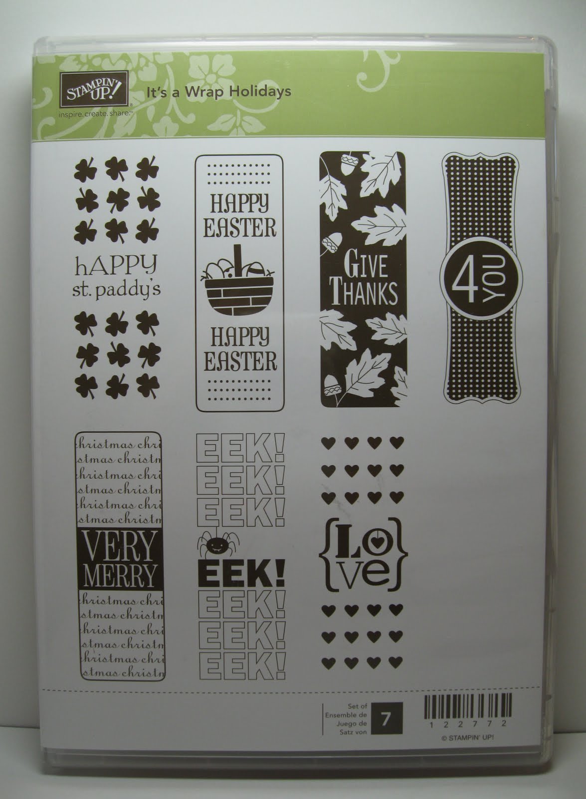 I have several projects for you and at the end of my post you will have a chance to win some Blog Candy! I am showcasing the brand new stamp called It’s a Wrap Holidays which can be found in the Holiday Mini. It is such a versatile set because you can stamp with it on Stampin’ Up! cardstock or use labels that you purchase at your local office supply store.