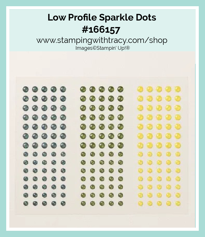 To complete my card, I added two Low Profile Sparkle Dots in Mossy Meadow to each end of the sentiment and added a piece of Basic White to the inside of the card.