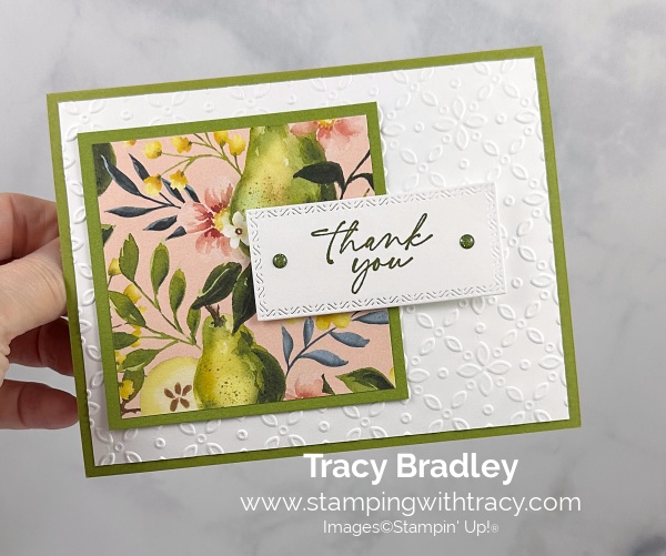 - Painterly Pears or Floral Impressions Designer Series Paper: 3″ x 3″