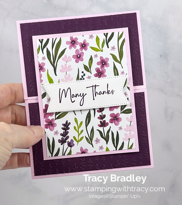 - Blackberry Bliss cardstock: 3″ x 3-3/4″
