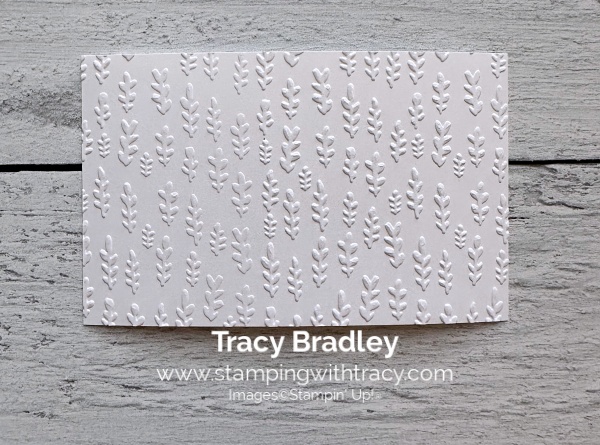 This is the design on the Gathering Leaves Embossing Folder. I love embossing folders and this one was no exception!