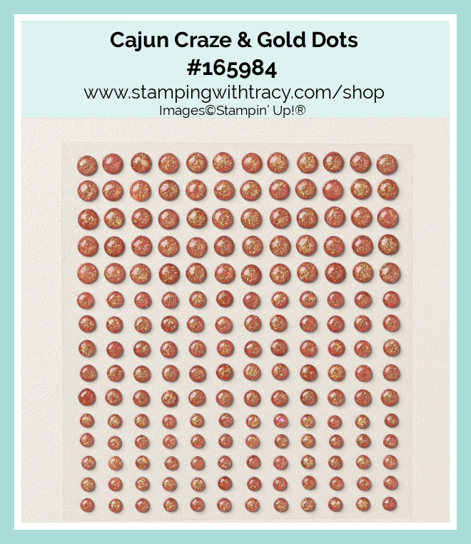 To complete my card, I added three Cajun Craze & Gold Dots around the sentiment and I adhered a piece of Basic White cardstock to the inside of the card.
