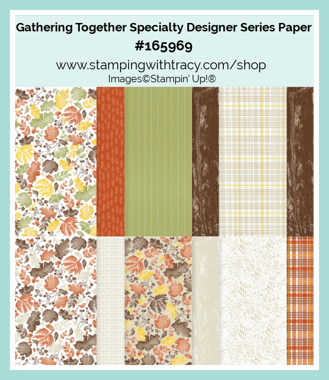 - Gathering Together Specialty Designer Series Paper: (4) 1-3/4″ x 2-3/8″