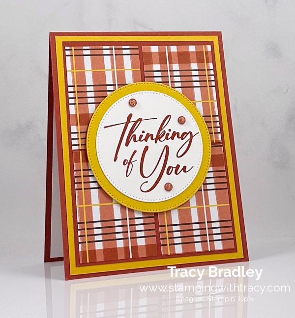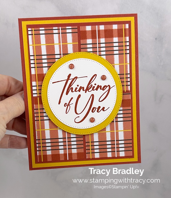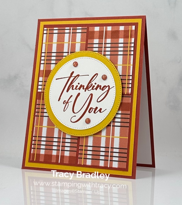 The card I’m sharing with you today was made using Floral Impressions Designer Series Paper, Sentimental Framing Stamp Set, Stylish Shapes Dies and Forever Plaid 3D Embossing Folder.