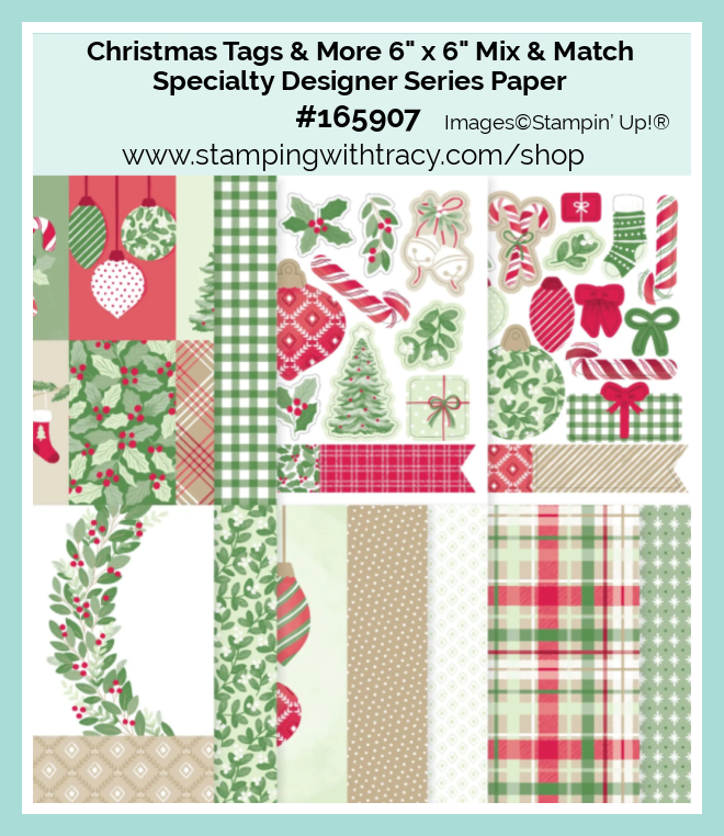 • Christmas Tags & More 6″ x 6″ Mix & Match Specialty Designer Series Paper: (punched out: banner, poinsettia, and bird)