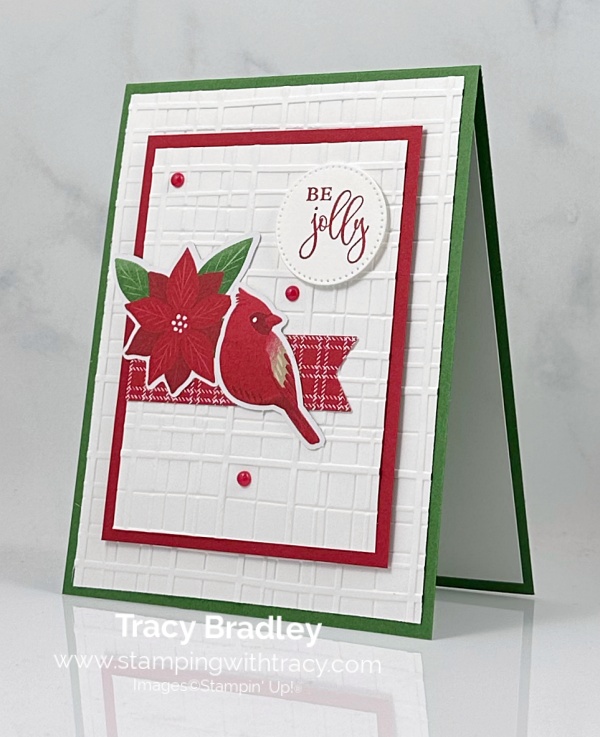 The card I’m sharing with you today is a Christmas card. I used the Ornamental Christmas Stamp Set, Christmas Tags & More 6″ x 6″ Mix and Match Specialty Designer Series Paper, Stylish Shapes Dies, Forever Plaid 3D Embossing Folder and Delightful Decorative Dots