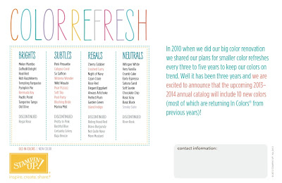 Stampin’ Up! released an update this morning about a Color Refresh! Some colors will be retiring but some In Colors will be returning! Watch the video for more information. With FREE SHIPPING this weekend, what a great time to stock up on cardstock that will be retiring, as well as stamp pads and reinkers! I am very happy that Pool Party and Wisteria Wonder are returning but will be sad to see Pretty in Pink go. If you have any questions, don’t hesitate to email me!