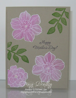 Here’s one more Mother’s Day card to show you. I made this one for my terrific mother-in-law, Pat! It is also done using the Color Wash technique. I decided to make her flowers pink so I used Melon Mambo. You can’t see the little pearls in the center of each flower but they are there!