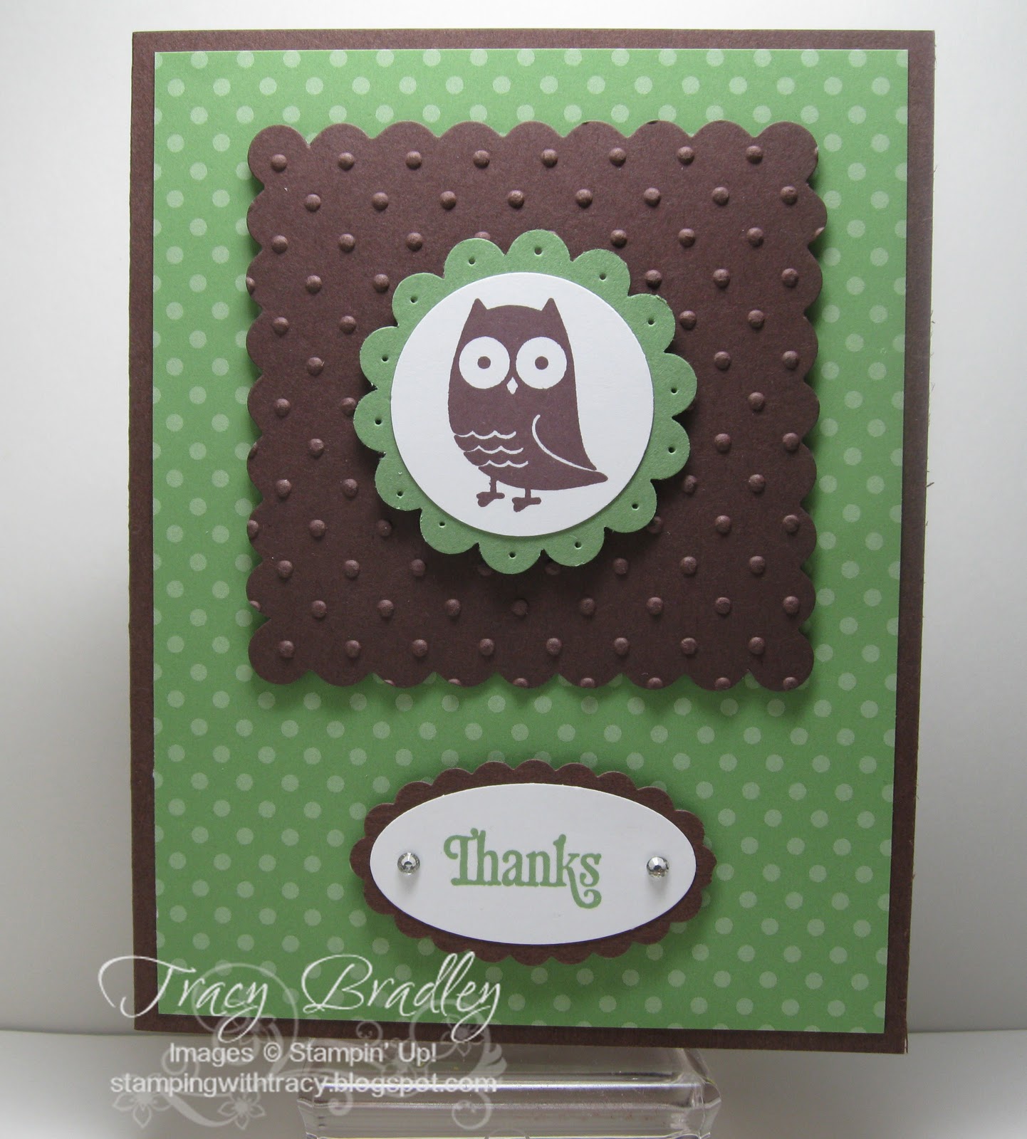 My cards today are ones I made for my second graders to thank them for some wonderful gifts they gave me. I made the pink cards for the girls and the green ones for the boys. We studied owls in class so I thought they might like the little owl from the stamp set Fox & Friends. I hope they like them!