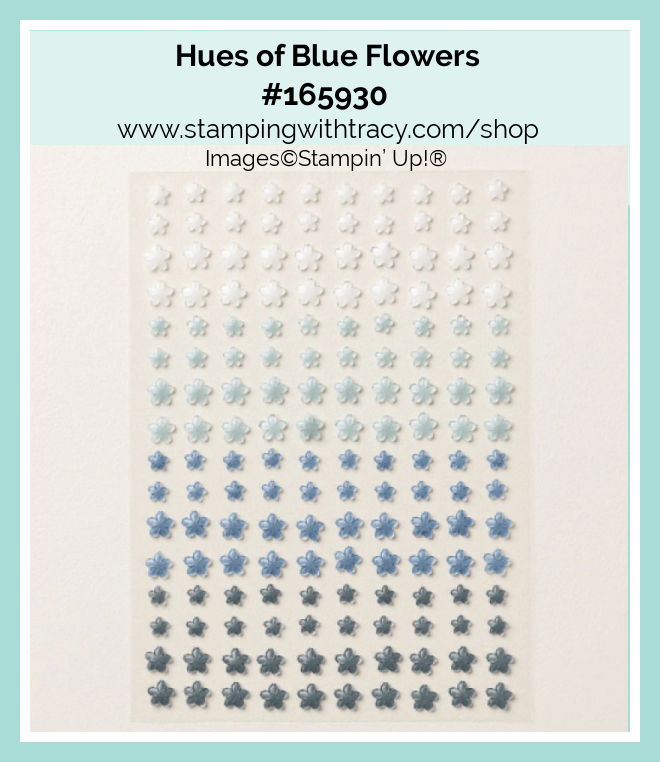 To complete my card, I added three Hues of Blue Flowers on the square and added a piece of Basic White cardstock to the inside of the card.