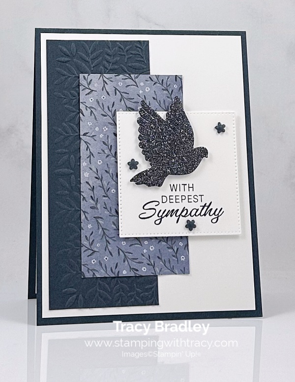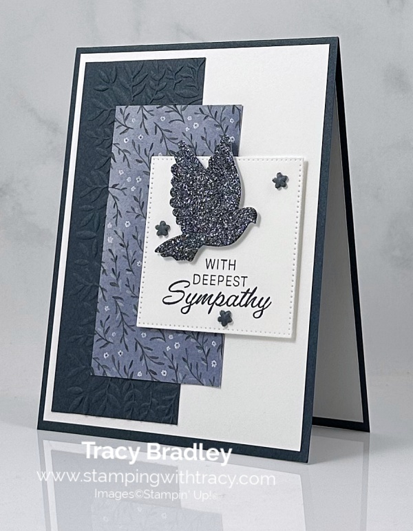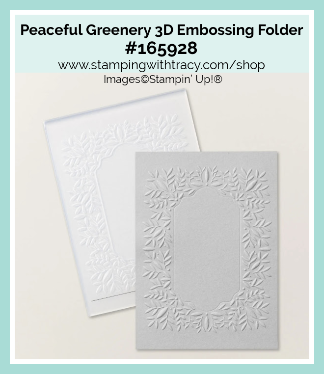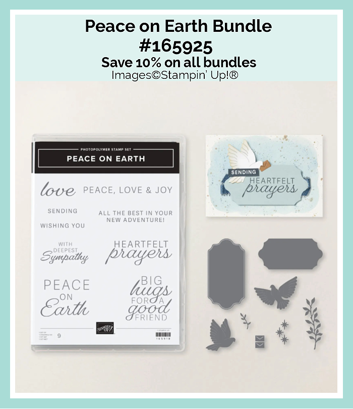 I’m sharing two cards with you today. When I finished my card for today, I saw that the Peace on Earth Bundle is not available at this time (you can get on a list; Stampin’ Up! will send an email if it becomes available). So, I made a second card with products that are available. The first card was made with the Peace on Earth Bundle, Peaceful Garden Designer Series Paper, Peaceful Garden Glimmer Paper, Stylish Shapes Dies, Peaceful Greenery 3D Embossing Folder and Hues of Blue Flowers The second card is made with all of these products but not the Peace on Earth Bundle but I used the Sentimental Framing Stamp Set.